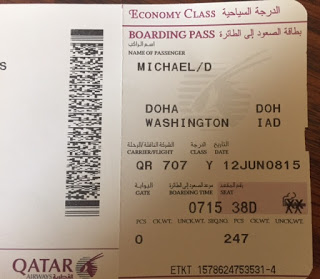 I was thankful the screaming toddler was in the row in front of us, in the center isle away from my window seat, instead of directly in front or beside us. We took off at 9:30 pm, and they began serving our dinner at 10:30. Qatar Airlines serves ample food. I wrote a little in my journal, and then watched one movie, and by 1 a.m. by my internal clock, I was sound asleep.