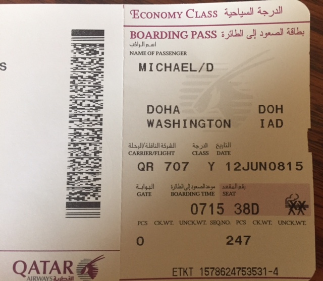 The first leg of our journey was heading into Washington, D.C. rush hour traffic, some of the worst in all the nation, on a Friday evening. We left our home in suburban Maryland just before 5 p.m. to accommodate traffic, parking, security, and shuttling to get to Qatar Airways inside the enormous airport complex. The first flight was more than fourteen hours to Doha, Qatar, on a Boeing 777. (Our very expensive return flight, due to my careless booking, (see last post) was flight 707.) I settled in, feeling like Angels were escorting our plane. Seven is Roma’s signature number.