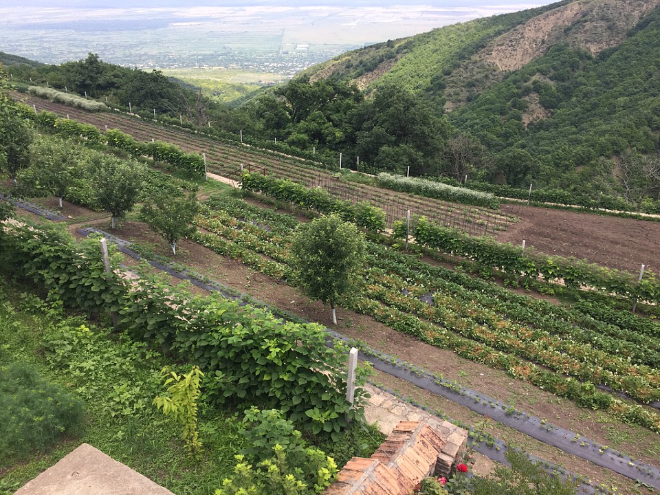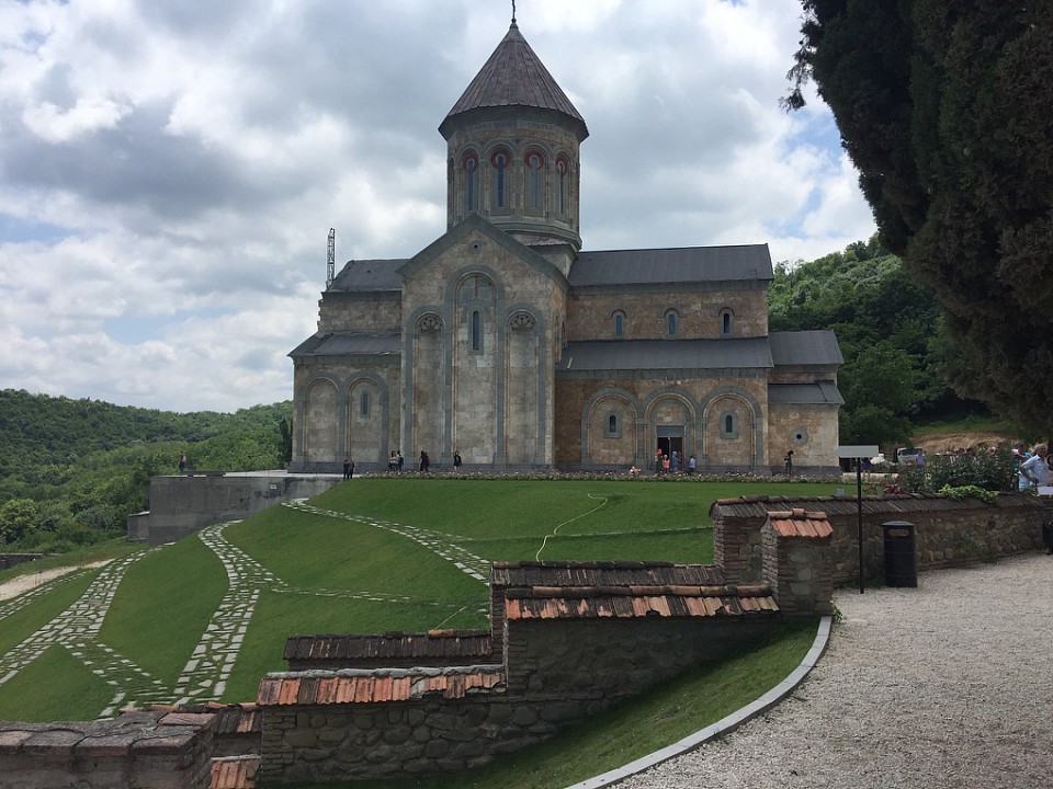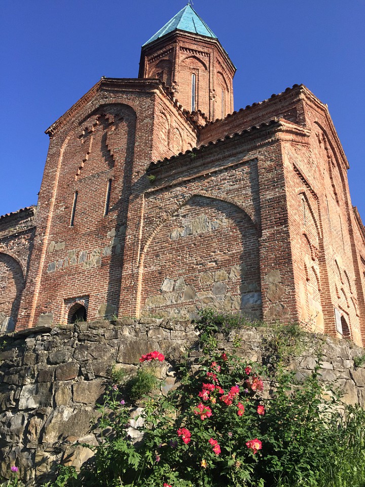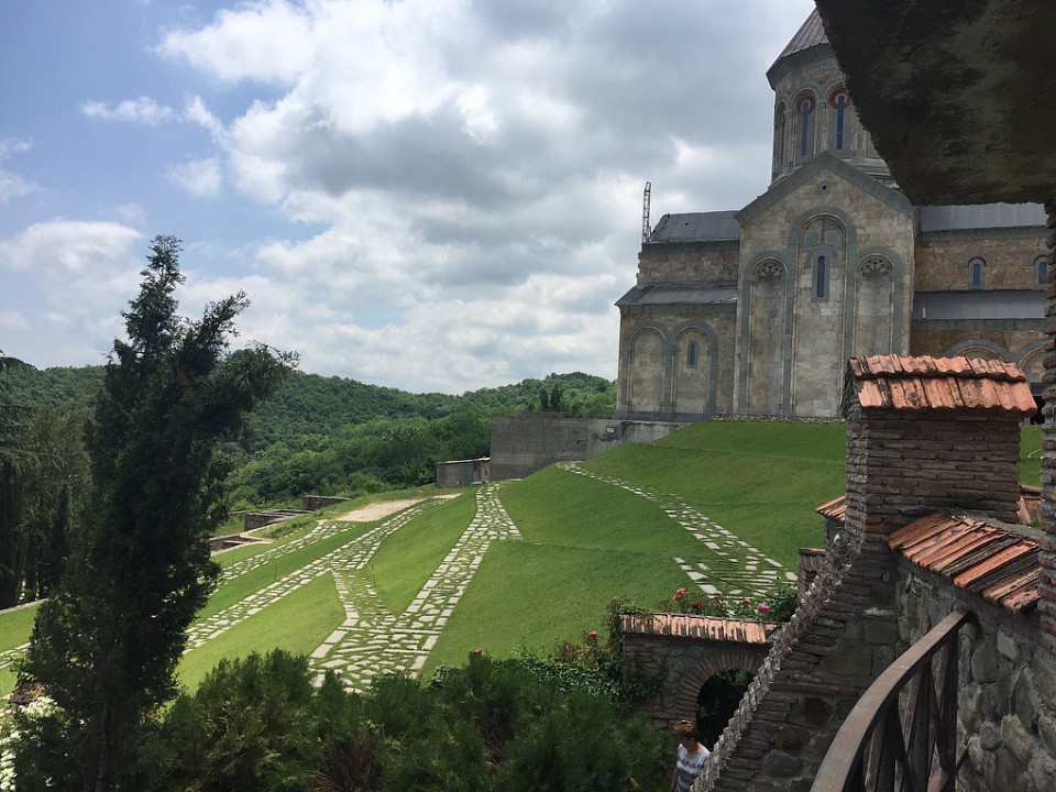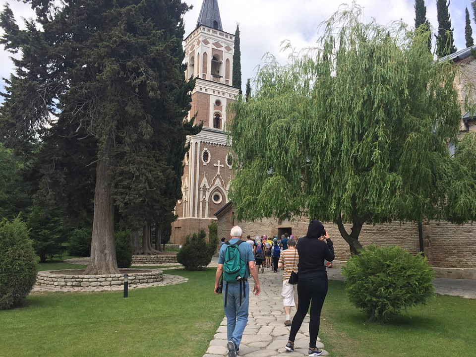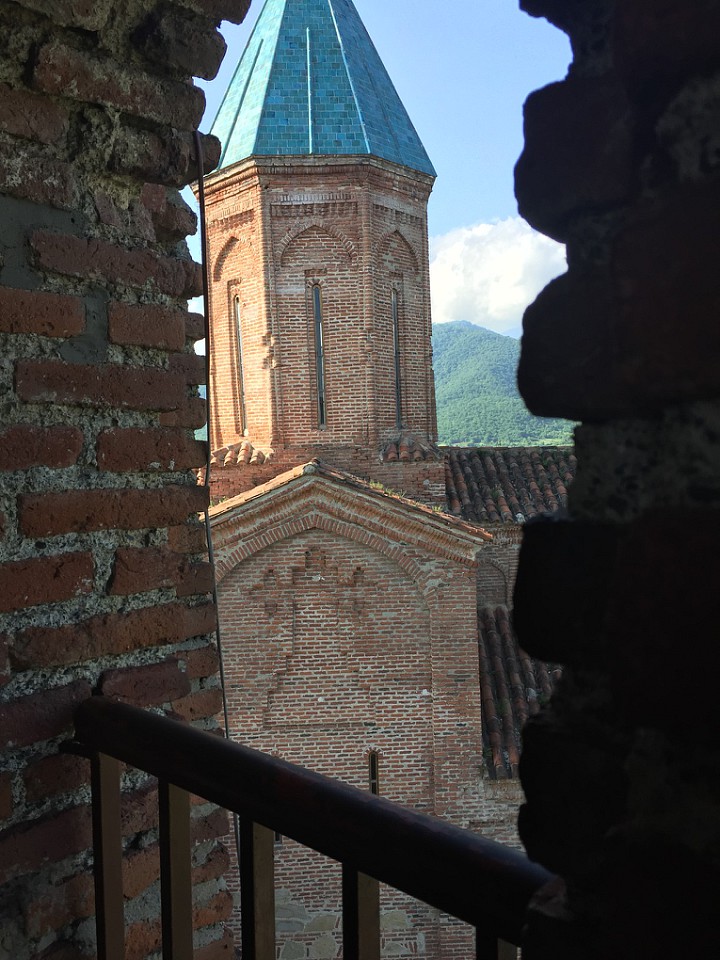 We drove about an hour and a half to the region of Kakheti. Misha explained that this was the burial place of St. Nino, and a destination of pilgrims over the centuries. Read more about St. Nino, the fourth century female evangelist credited for converting the ancient Kingdom of Iberia to Orthodox Christianity. In her later life, she withdrew to the area of the Bodbe Gorge, in Kakheti, where she died 338 – 340 AD. To memorialize her, King Mirian III had a small monastery built where she was buried. The grounds were stunning and immaculate.