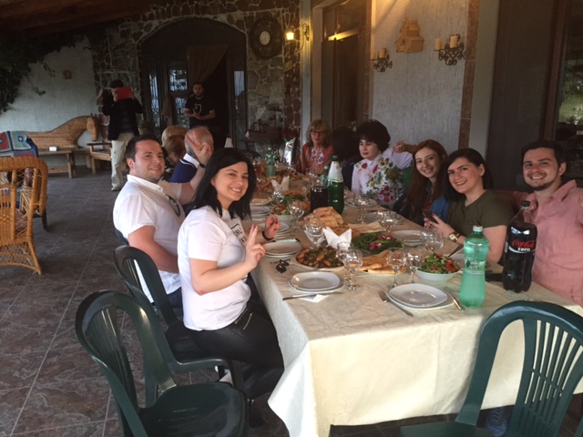 Cousins offered toasts again and again from pitchers brimming with homemade red wine all around the table covered with a feast of fresh fruit and vegetables and traditional Georgian food. They toasted, thanking God. They toasted us as wonderful parents. To the health and happiness of our other children. I lifted my glass to my dear sister Lia, for all she had done to organize our trip. Bruce thanked everyone for their generosity, as Maia translated. And in perfect English, Zauri, speaker of “leetle English” said, “To Debbie, the best Mother in the world,” as tears overflowed my eyes again and again, although my heart was overflowing with joy and gratitude. I told them our friends who knew Roma so well instructed us to find out where Roma got his big heart, wit, and personality. The cousins pointed to Zauri’s mother, as she blew kisses, and smiled a revealing glimpse of mischief.
