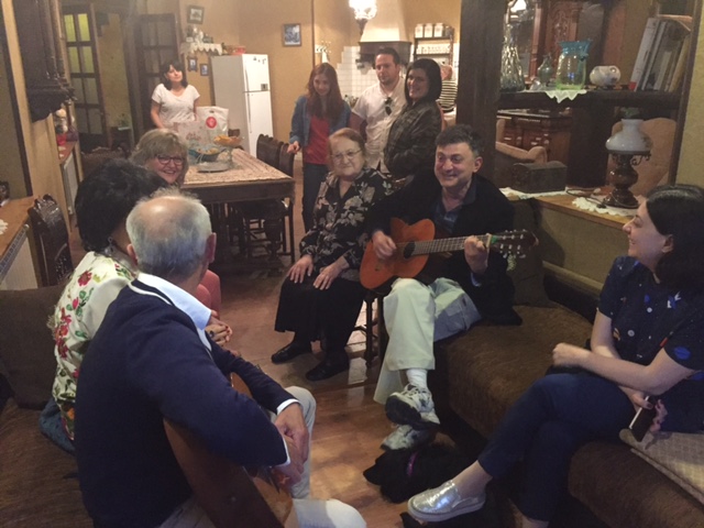 While Georgio was fetching his guitar, and the family was gathering in a large comfortable room, Zaur, who knew only “leetle English” began to sing in perfect English, the Beatles’ “Girl.” “Is there anybody going to listen to my story all about a girl who came to stay? She’s the kind of girl you want so much it makes you sorry. Still, you don’t regret a single day,” and then the rest of us chimed in, “Ah, girl. . . girl.” That got the singing and dancing started in earnest.
