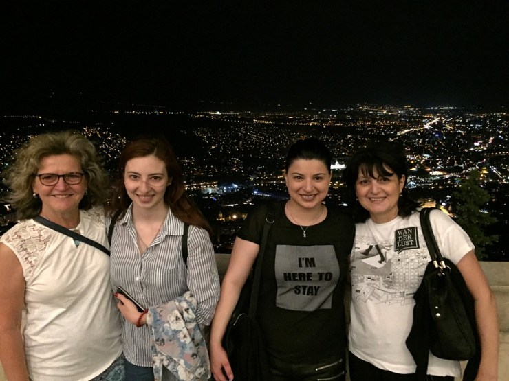 When Misha returned us to our hotel, he informed us that Lia, Elene, and a cousin we met the night before, Tamara, would arrived to pick us up around 9 p.m. Tamara, or “Tako,” 28, was a funny and brave young woman, who owns her own car and drove the dangerous roads in Tbilisi. And she drove quite responsibly. I asked Elene if she also drove, and her eyes widened and she shook her head emphatically no. So, it wasn’t my imagination that most drivers in Georgia drove a bit recklessly.