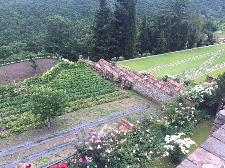 The monastery, nestled in tall cypress trees, currently functions as a nunnery once again. Bodbe Monastery is a destination for thousands of visitors and pilgrims each year. The nuns tend the vast and beautiful gardens, orchards, and vineyards. The grounds were stunning and immaculately manicured.